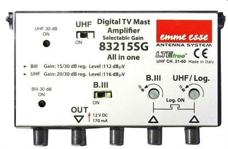 La serie di amplificatori da palo con filtro LTE integrato è stata progettata per soddisfare le molteplici esigenze di ricezione dei segnali TV sia analogici che digitali. Il corpo metallico e i connettori “F” conferiscono un alto livello di schermatura. La produzione comprende numerose versioni che si differenziano per il numero e tipo di ingressi, il guadagno (da 20 a 40 dB) e il livello di uscita massimo da 108 a 114 dBµV. Tutti i modelli presentano una buona linearità su tutta la banda amplificata, un’ottima separazione tra i singoli ingressi ed un ottimo rapporto segnale / rumore. Il buon livello di uscita e l’amplificazione separata VHF / UHF garantiscono un basso coefficiente di intermodulazione. La custodia esterna realizzata in plastica antiurto prevede un sistema innovativo per il rapido collegamento dei cavi e garantisce la migliore protezione dagli agenti atmosferici. Tali prodotti rispondono alle vigenti normative riguardanti la marcatura CE.